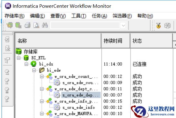 创建工作流:点击工作流创建工作流,然后把会话从左边拖入界面,右键会话启动工作流。