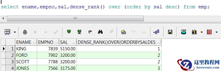 使用分析函数dense_rank()