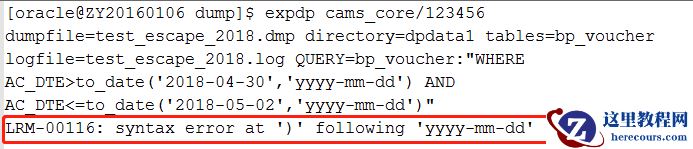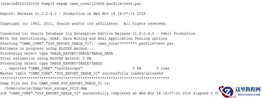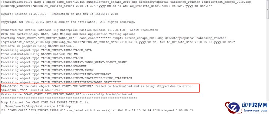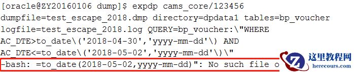 (1)按照expdp命令规范设计导出语句,原句(无转义)执行情况如下