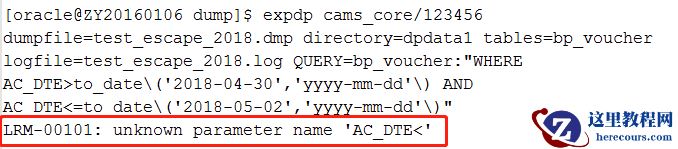 (1)在Linux下执行expdp或者impdp命令且带有INCLUDE,EXCLUDE,QUERY等子句时,需要对括号、单引号、双引号、大于号、小于号等特殊字符做转义。