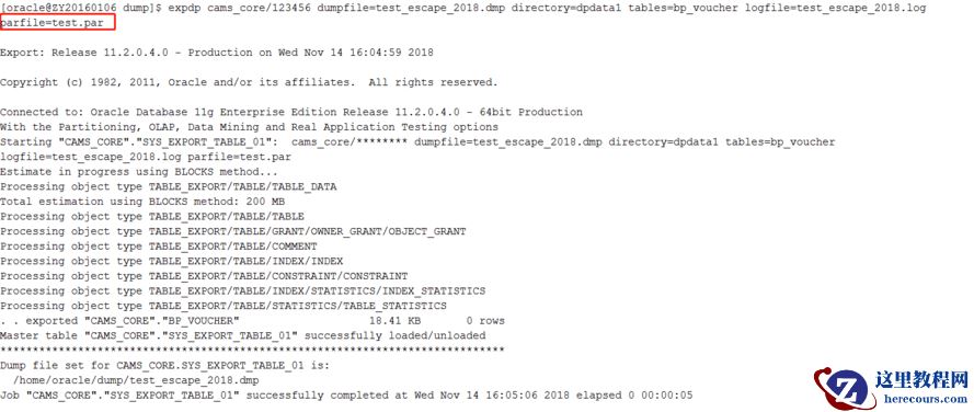 场景2:在服务器端创建parfile文件并执行expdp命令