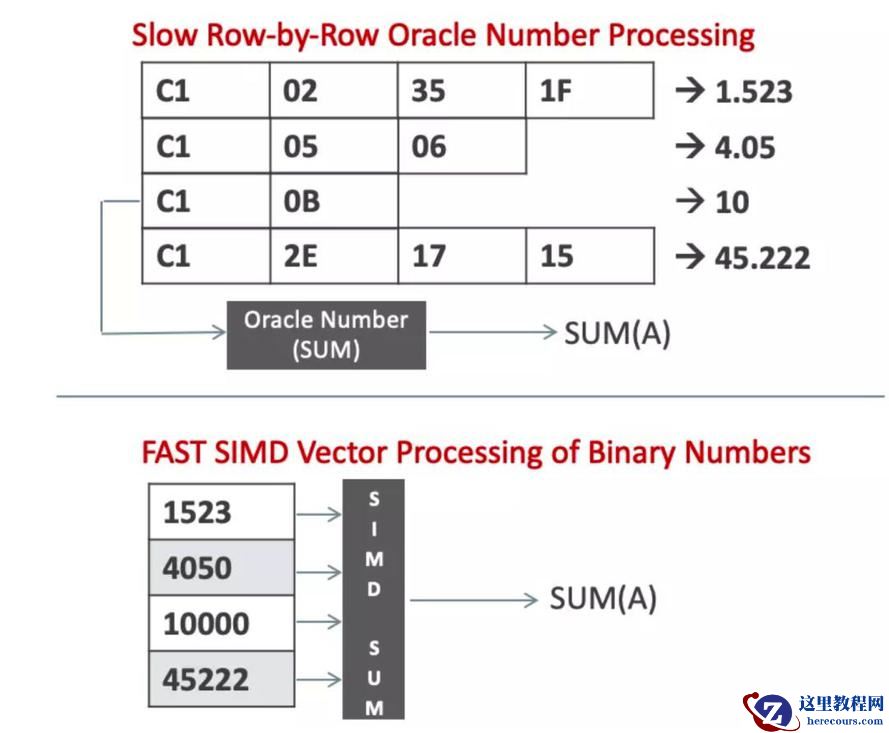 除此,18c中IN-MEMORY做了以下算法优化,number类型可以使用SIMD硬件进行快速计算,列存储将NUMBER数值列以原生二进制表示,通过使用SIMD矢量处理,简单聚合和Group by聚合性能明显提升,可高达9倍。针对混合工作负载性能,达到2x提升,同时通过压缩,fast-start优化,dynamic capturewindows等技术,在各个应用场景下的性能都得到了极大改善。