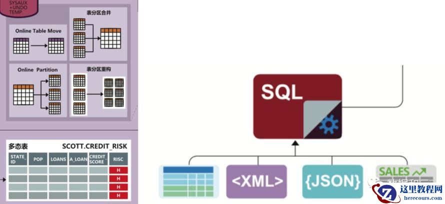 同时数据库在表的操作支持上,比如对多态表,inline外部表的支持,表的在线分区重构和合并的实现,都体现了全面兼容可用,灵活切换的趋势。外部表同时也支持在IN-MEMORY中使用。