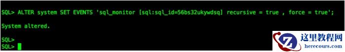 ALTER system SET EVENTS 'sql_monitor [sql:sql_id=56bs32ukywdsq] recursive = true , force = true';
