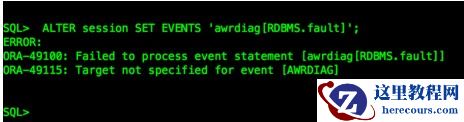 而报出ora-49115说明event的目标没有指定,对于awrdiag[]目前还未找到的相关的其他说明,因此就没有继续进行分析。