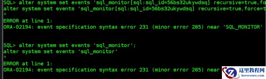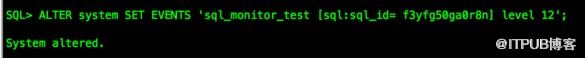 ALTER system SET EVENTS ' sql_monitor_test [sql:sql_id=f3yfg50ga0r8n]level 12';