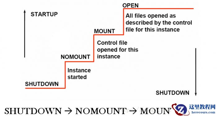 Oracle启动分3个过程nomount、mount和open,这三个过程具体执行的工作如下: