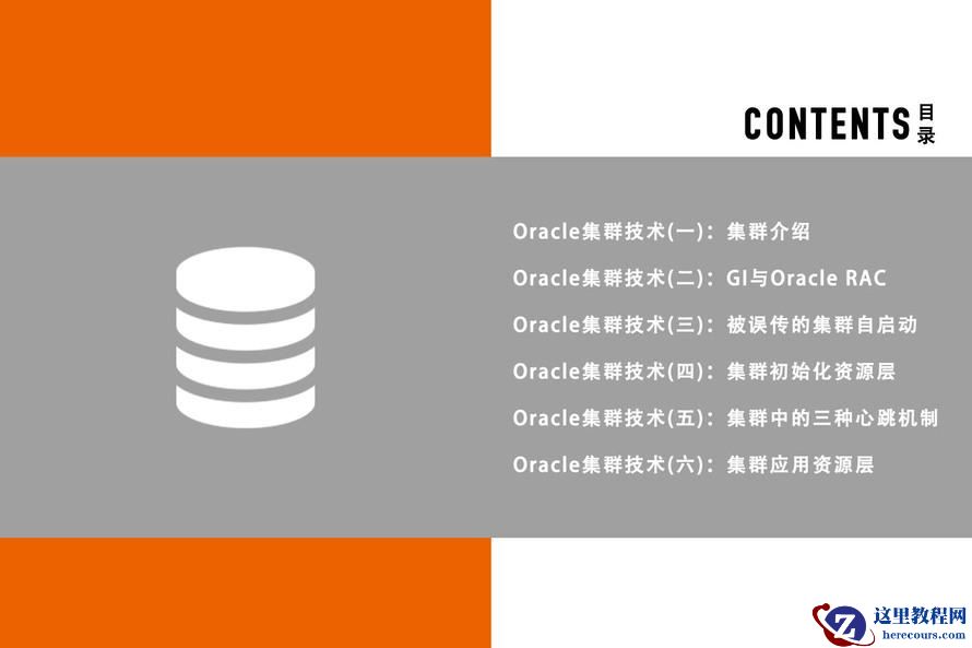 该系列课程从集群的基本架构讲起,带你了解Shared-Nothing与Shared-Disk的区别,Shared-Disk所面临的三个问题,Oracle集群的组成以及Oracle集群是如何解决Shared-Disk架构中的三个问题,另外讲到Oracle集群是如何随系统启动而自启动以及Oracle集群的初始化资源层和集群中的三种心跳机制。