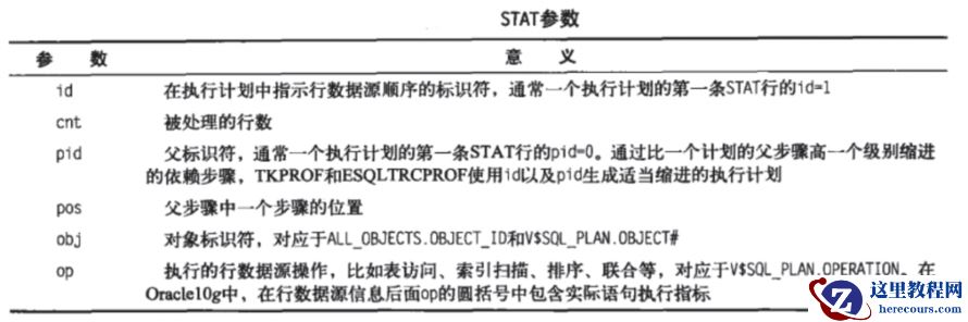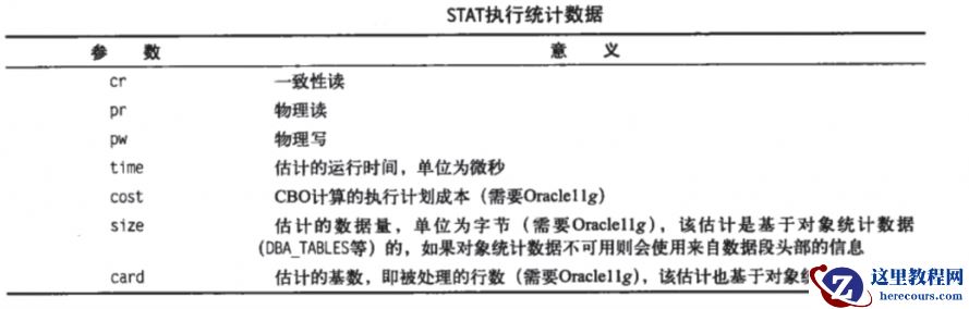 一组STAT条目的每一行代表了形成语句结果的行源 所谓的行源,指从索引或表中检索的数据或者多表连接的中间结果(因为必须先进行两表连接) 10g以后,STAT条目仅在TIMED_STATISTICS=TRUE,并且SQL_TRACE=TRUE时才被写入 请注意,若STATISTICS_LEVEL=BASIC(缺省为TYPICAL)时会隐式设置TIMED_STATISTICS=FASLE