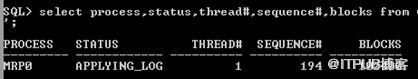 select process,status,thread#,sequence#,blocks from v$managed_standby where process like '%MRP%';