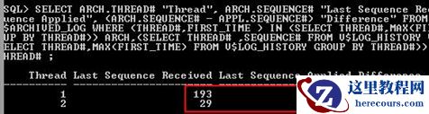 上面的查询可以分解成以下几个 : SELECT ARCH.THREAD# "Thread", ARCH.SEQUENCE# "Last Sequence Received", APPL.SEQUENCE# "Last Sequence Applied", (ARCH.SEQUENCE# - APPL.SEQUENCE#) "Difference" FROM SELECT THREAD# ,SEQUENCE# FROM V$ARCHIVED_LOG WHERE (THREAD#,FIRST_TIME ) IN (SELECT THREAD#,MAX(FIRST_TIME) FROM V$ARCHIVED_LOG GROUP BY THREAD#)) ARCH SELECT THREAD# ,SEQUENCE# FROM V$LOG_HISTORY WHERE (THREAD#,FIRST_TIME ) IN (SELECT THREAD#,MAX(FIRST_TIME) FROM V$LOG_HISTORY GROUP BY THREAD#)) APPL WHERE ARCH.THREAD# = APPL.THREAD# ; 从 V$LOG_HISTORY 里查询到的最大的 sequence 怎么就是 applied 的最大 sequence? 是不是因为它显示的是控制文件的 log history? 如果 applied 了 , 才可能更新了控制文件 ? v$log_history displays log history information from the control file. v$archived_log displays archived log information from the control file, including archive log names. 或者用下面的查询 ?