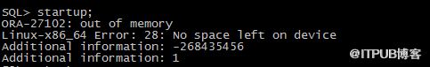 按照以上的理论,这里的kernel.shmall=85899345920/4096=20971520,但是我设置成20971520,startup数据库仍报以上的错误,修改成41943040后,startup成功,这里的原因我暂时还未搞清楚,等后续研究之后再更新此篇文章,如有网友知道原因的,欢迎留言。