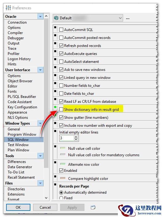 PLSQL Developer查询结果表格中复制字段值,总会 卡顿一下,原因是PLSQL Dev默认会再次从oracle 数据字典里读取字段meta info,如图:
