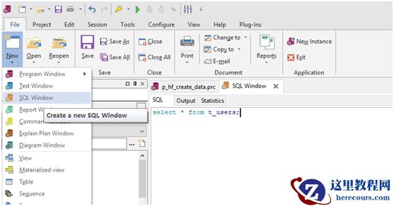 File->New->SQL Window