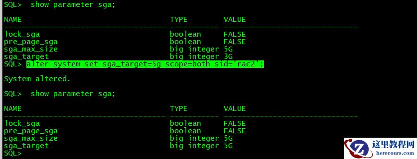 1、 alter system set sga_target=5G scope=spfile;