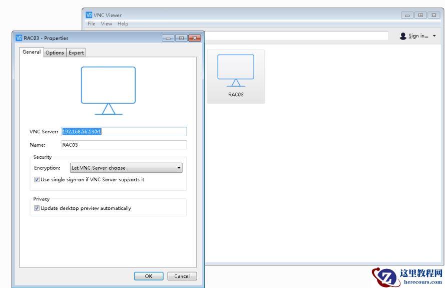 启动vnc view,设置连接 (注意连接方式是: IP:number) (这里是 192.168.56.110:1))