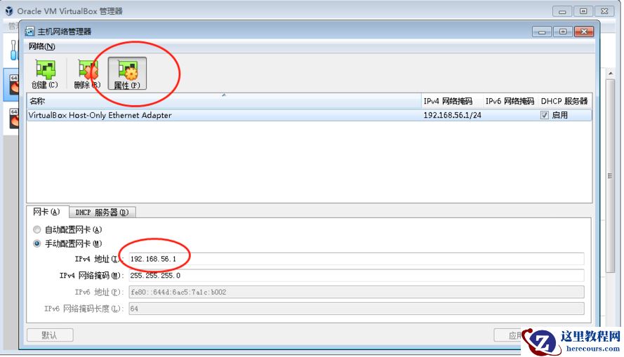 默认网段: 192.168.56.1/24, 当然可以自己设置,但保证虚拟机内部设置网段与此一致。