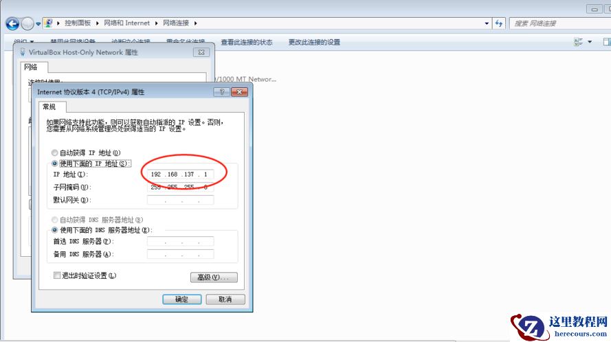 (2) 设置虚拟网络IP。 由于上一步设置网卡共享,会导致之前的虚拟IP(192.168.56.1)变动成默认IP(192.168.37.1)如图: