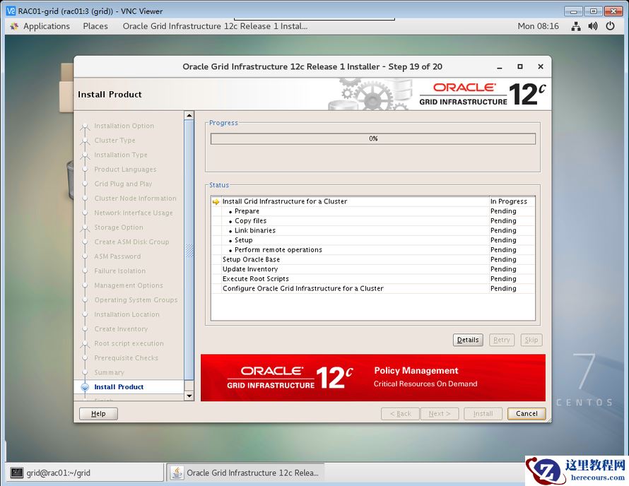 通过VNC登录grid用户的远程桌面,只需要登录一个节点的远程桌面进行全部安装 。