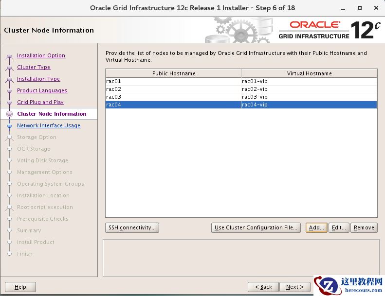 添加所有的4个节点的主机名和VIP ,然后直接配置对等性。