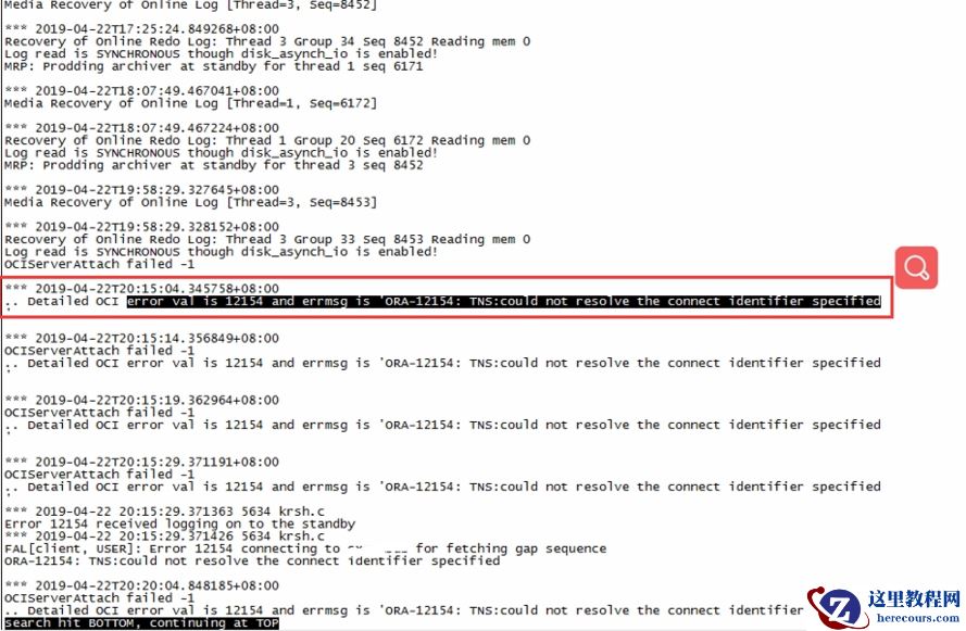 前几天客户反映ADG备库出现报错具体内容如下: FAL[client,USER]:error 12154 connect to orcl for fetching gap sequence,