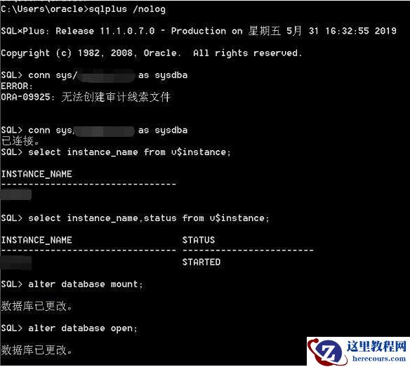 - ORACLE for windows 审计文件xml文件过多导致数据库启动报错ORA-09925