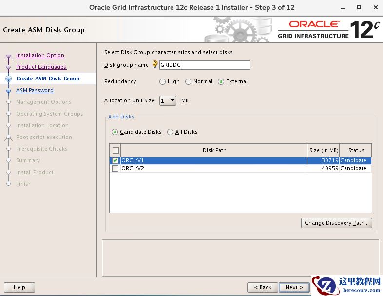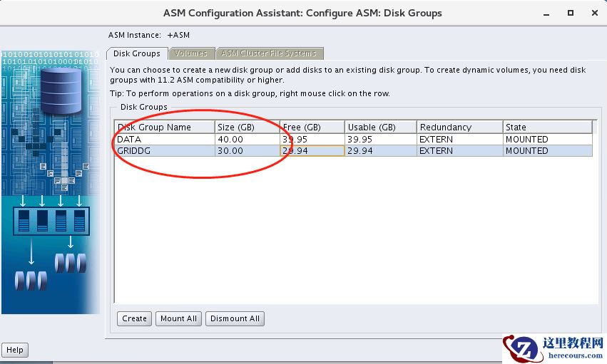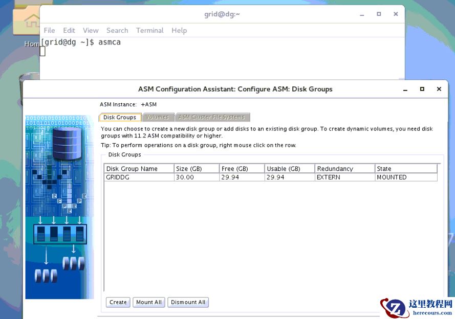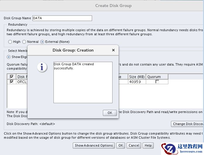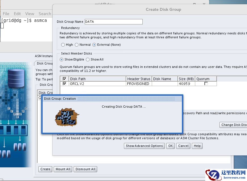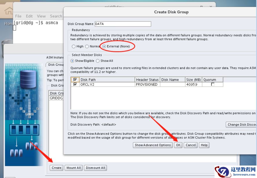 单节点执行即可,对应主库共享磁盘组: DATA, GRIDG. 这里只是为了一致,没有强制要求一样。