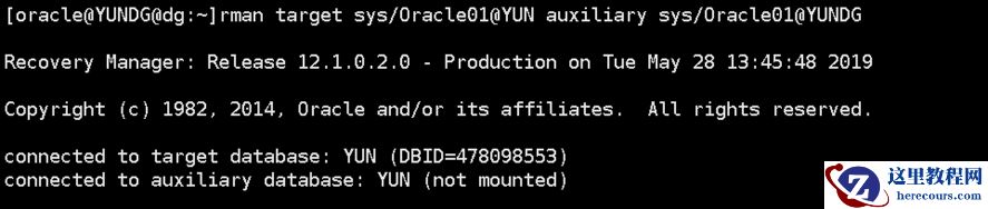rman target sys/Oracle01@YUN auxiliary sys/Oracle01@YUNDG