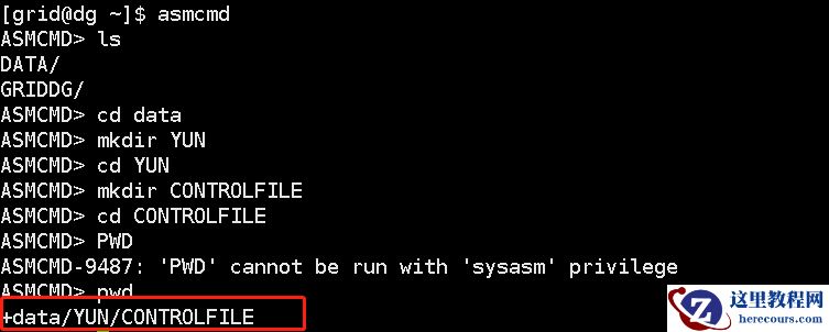 (2)从库,用grid用户,进入asmcmd,建立相关目录