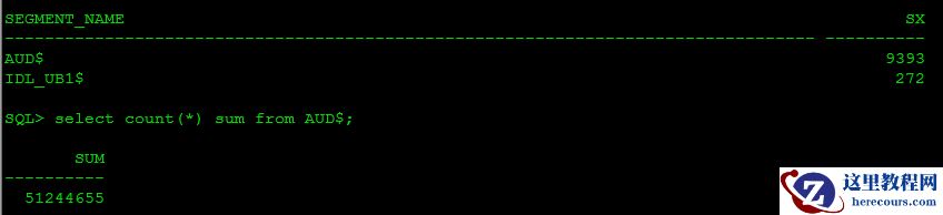 三、查看AUD$基表大小及数据量(发现AUD$表占用了SYSTEM表空间9.3G的空间)