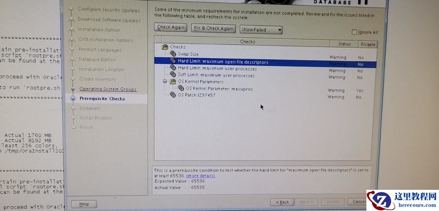 oracle软件安装时在check时发生如下提示