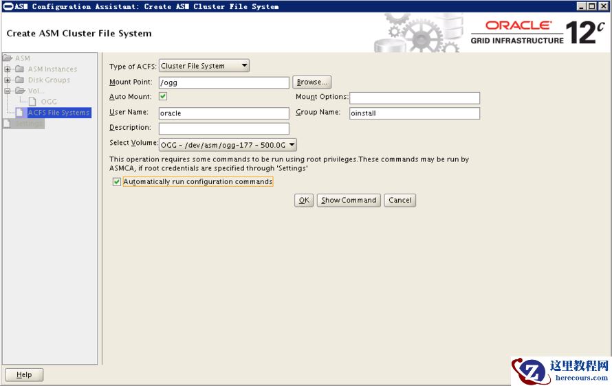 - 12.2RAC利用asm创建ACFS用于部署OGG