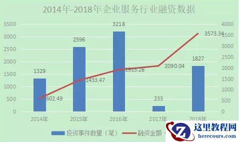 根据IT桔子收录的投资信息显示,2018年企业服务领域的投资事件数量是所有行业中最多的,全年新增投资事件总共1827件,投资金额高达3753.34亿元。