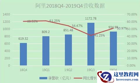 在2019财年第四季度,阿里巴巴总体营收为934.98亿元人民币,同比增长均达到51%。淘宝天猫过去一财年新增超1亿用户,为品牌和商家带来超过9000亿增量生意。与此同时,阿里巴巴多年来一直保持收入的高速增长,最近五个季度,除了2019年第三季度增速为41.25%,其他四个季度的增速都超出了50%。