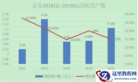 无独有偶,京东也存在同样问题。此前京东集团发布的2019年第一季度财报显示,截至2019年3月31日,京东过去12个月的活跃用户数为3.105亿,虽同比增长15%,但较上季度的3.053亿仅上涨了1.7%。