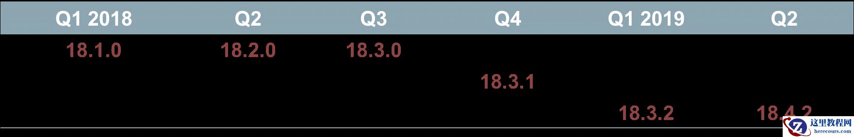 每个季度更新发布之后的六个月内,最多有两个独立的更新修订(RUR)。例如,Release.Update.1和Release.Update.2,其中“1”和“2”代表版本迭代。