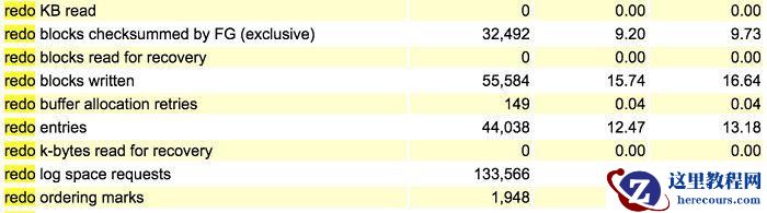 那么到底是什么原因导致写出不畅呢?是因为Redo量太大,还是因为磁盘效率过低呢?通过数据库的其他统计数据可以进行进一步的分析。