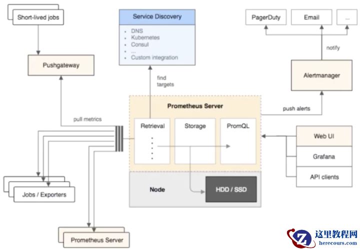 那我们先来看一下 Prometheus 整个的大致一个结构。