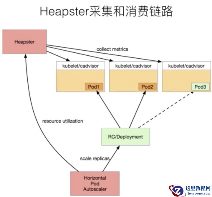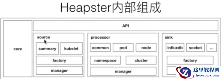 在早期,也就是 1.10 以前的 K8s 版本。大家都会使用类似像 Heapster 这样的组件来去进行监控的采集,Heapster 的设计原理其实也比较简单。