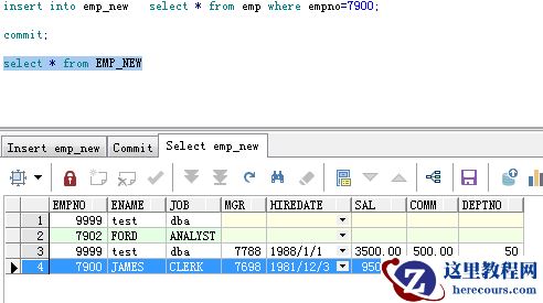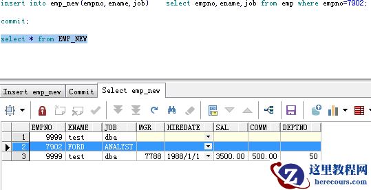 (该插入是引用了emp表的雇员编号为7902的查询结果)