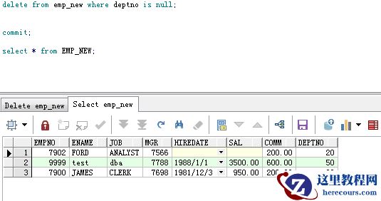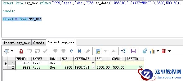 (为了避免更改掉原始的数据,所以我把emp复制了一份出来,表名为emp_new,表空没有数据。以下的用例都使用这张emp_new)