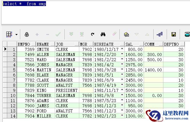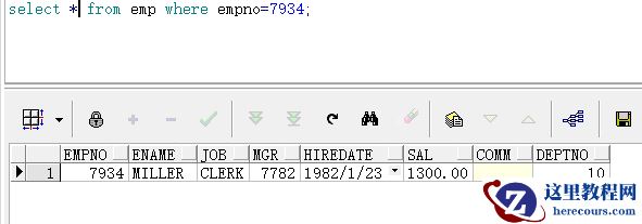 查询雇员表的雇员编号为7934的结果