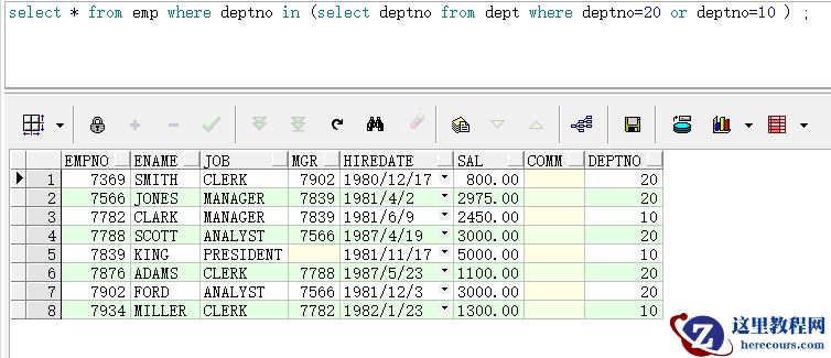 (注意子查询的条件,子查询的条件筛选是多个)