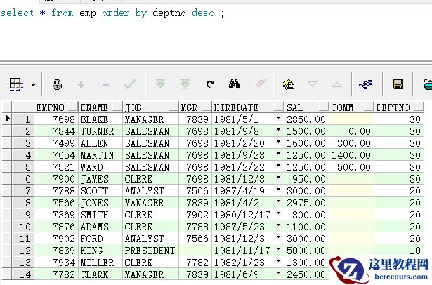 一、查询语句ORACLE 数据库中获得数据表中的结果,称为查询语句,其关键词是 select(下面其所有的示例均为scott模式下的对象) 1.1 查询语句基础1.1.1 获得表中全部字段与结果语法如下