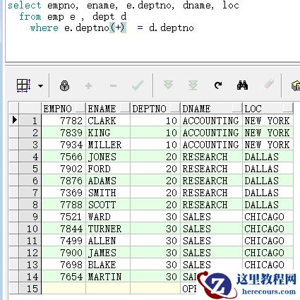 2. 左表的全部信息都会查询出来,右表的信息只有关联上的信息才会查询到,右表没有关联上的信息,则会显示为空,关键词 left join,也可以用(+)来关联