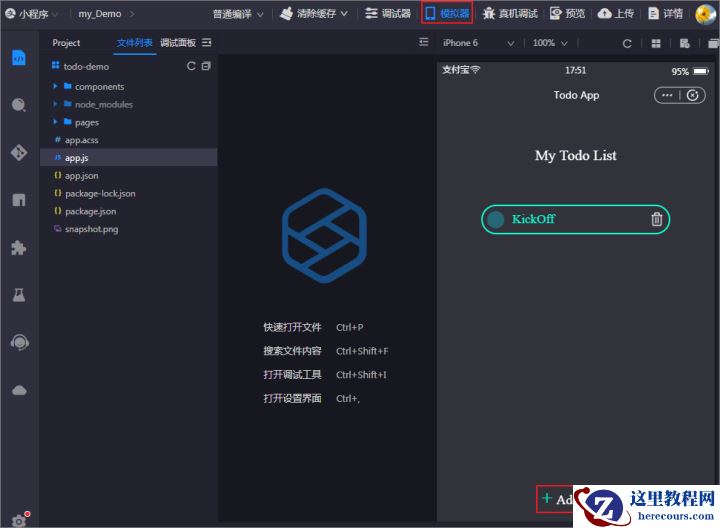 打开小程序模拟器,单击 +AddTodo 添加待办事项。