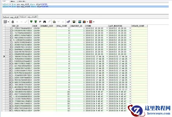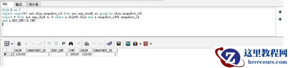 SQL>With b as ( select count(*) cnt,objn,snapshot_id from sys.exp_stat$ es group by objn,snapshot_id) select * from sys.exp_obj$ a, b where a.objn=b.objn and a.snapshot_id=b.snapshot_id and a.EXP_CNT<>b.CNT;