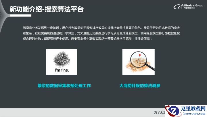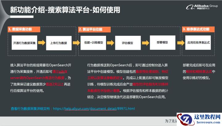 基于上述问题,客户方的技术人员开始调研解决方案。客户内部明确要求对于搜索效果的优化周期要在两个月之内完成,而技术人力却只有一个。解决搜索结果召回问题的主要路径就是建立起搜索关键词的智能语义理解服务,而从0到1的实现该能力不仅需要多个精通NLP的算法专家,还需要至少几十万量级有人工标注的数据物料做训练,而现阶段,客户方面既没人也没数据,市面上也没有现成的开源插件。基于这样的效率和投入成本的考虑,客户就选择使用OpenSearch对于之前的搜索功能进行改造和升级。该客户使用了OpenSearch的电商分词、电商查询语义理解之外,还将一些自定义的补丁词库放到了OpenSearch上,而词库可以由运营同学直接上传,而不需要为技术人员增加额外的开发工作量。经过不到2个月的时间,全流程实现完成之后,使用OpenSearch的部分服务的结果召回率基本达到了90%左右,而自建服务的结果召回率只有31%左右,两者进行对比就能够发现使用OpenSearch在结果召回率方面具有较大的优势。除此之外,使用OpenSearch使得搜索引导成交转化率相比于原本的开源自建服务提升了9%。三、新功能介绍-搜索算法平台和人气模型搜索算法平台之所以要实现搜索算法平台功能,是因为当搜索业务发展到一定阶段,用户行为数据对于搜索排序效果的提升将会承担重要的角色。受限于行为日志数据的庞大和繁杂,这个时候往往需要机器通过统计学习算法,对大量的历史数据进行学习从而生成经验模型。利用经验模型将行为数据量化为合理的分数,最终在排序中使用。想要在业务中高效实现这一整套机器学习流程,往往会面临以下两个问题:繁杂的数据采集和预处理工作:每天亿级的数据都需要通过自动化的方式进行采集、存储和处理,对于这些原始数据还需要进行统计、分析和处理来发现用户行为的基本规律,这就要求开发者具备长分析能力和长期经验积累,比如发现原始数据正负不均衡时,如何构建出正负样本数均衡的样本数据,这些还需要一定的算法工作经验。大海捞针般的算法调参:面对错综复杂的算法参数,开发者们往往需要花费非常多的时间进行调试,而这就如同大海捞针一般。当找到一个看似靠谱的参数组合之后,这个参数组合是否最优还会存在一定不确定性。