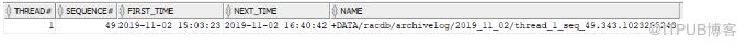 SQL> SELECT THREAD#,SEQUENCE#,FIRST_TIME,NEXT_TIME,NAME