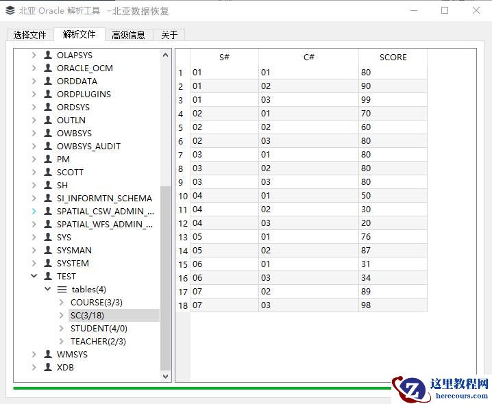 4 使用北亚oracle解析工具,解析所有数据文件中的数据记录,按用户导入到新的数据库中